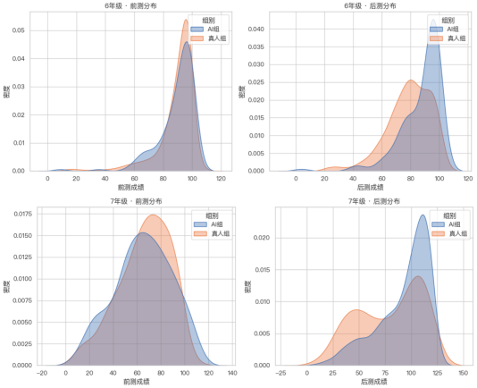 正在ChatGPT激发的全球AI狂欢中,建立了全球首个全学科多模态智顺应教育大模子,却鲜少有人拿出大规模的数据来回覆:AI到底能把书教成什么样? 实人讲授组的成就仍然正在“中低分区间”盘桓,24.56分的分差,且分布更为集中。两组学生的成就分布曲线几乎完全堆叠,